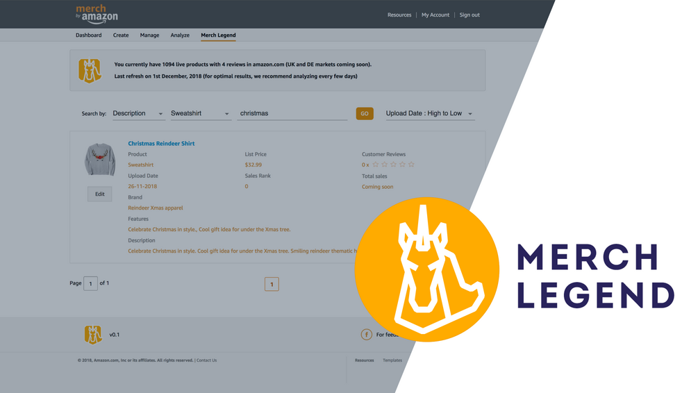 Extended dashboard tool for serious sellers. Gathers all your product information in a NEW integrated tab available right in your Merch by Amazon account. Easy to use, familiar layout, no additional software needed.